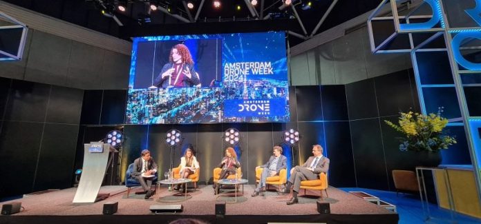 Un panel en la Amsterdam Drone Week, compuesto por Oliver Reinhardt de Volocopter, Thierry Allain de la DGAC, Solene Le Bris , Departamento de Innovación del Groupe ADP y Maria Algar Ruiz, Gerente del Programa de Drones de EASA, discutió lo que los observadores de AAM probablemente verán en París este año.
