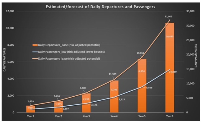 “A partir de los 887.000 pasajeros anuales previstos, se puede alcanzar un total acumulado de 2,3 millones de pasajeros poco después de la EIS para el año 2 en el escenario base o en el escenario potencial ajustado al riesgo.